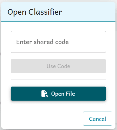 When you want to open the saved classifier, got back to https://tm.gen-ai.fi/, click "Open" from the top and open the zip file from the computer.